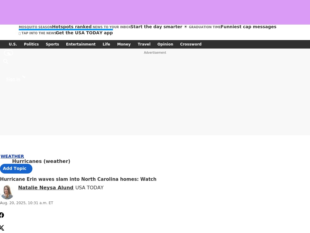 usatoday.com — Aerial footage shot using a drone in the state's Outer Banks on Tuesday, Aug. 19, shows waves slamming into raised, colorful beach houses along ...