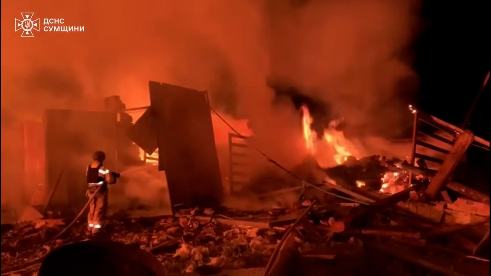 news.sky.com — Please use Chrome browser for a more accessible video player. 0:26. The strike on Tuesday sparked a major fire at a fuel and energy infrastructure ...